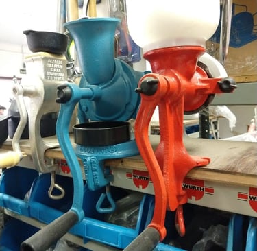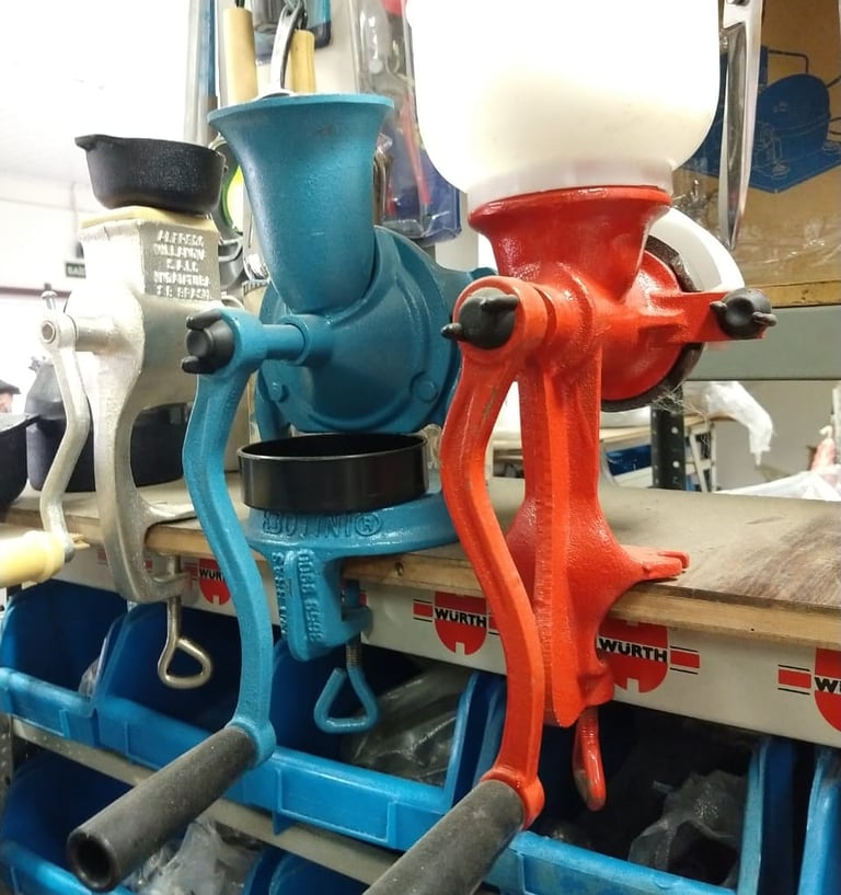 Moedores de café, grãos e queijo