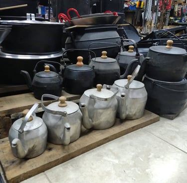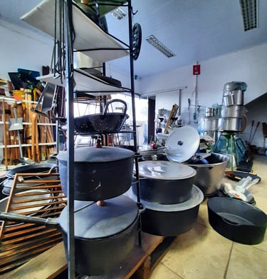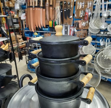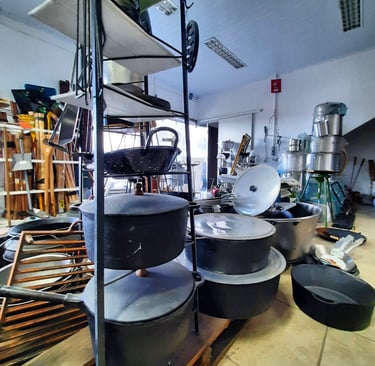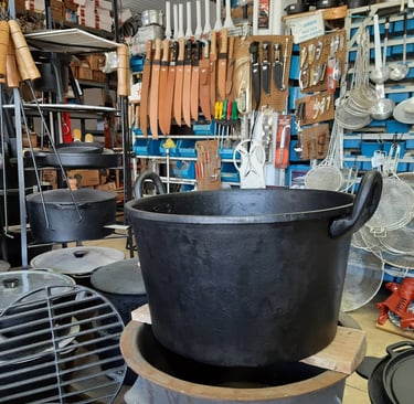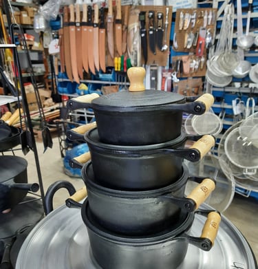 Panelas, ferramentas, cordas, chapas de ferro fundido, e muito mais...